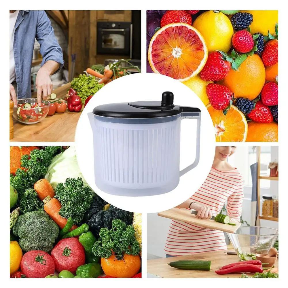 Bullet Points: 1.Easy Preparation: Designed for daily family use, effortlessly wash, hold and store ingredients with this salad spinner. Effectively remove excess water and enjoy easy meal prep 2.Effortless Handling: With its handle design featuring a comfortable grip, this salad spinner allows for effortless and convenient operating, reducing hand fatigue. It also makes dehydration and cleaning easier and more flexible 3.Efficient Dehydration: With its innovative design, this salad spinner can quickly drain excess water from ingredients, allowing for efficient dehydration while maintaining their well-maintained taste. Perfect for making healthy delicacies like salads and dried fruits 4.Food-Grade and Sturdy: Crafted from food-grade material, our salad spinner ensures safe and healthy usage without the fear of damage. It keeps your greens crisp and well-maintained every time 5.Improved Sanitation: Enjoy a healthy and clean salad with this detachable salad spinner. Its parts are easy to clean through hand or machine washing, extending its service life and simplifying daily maintenance Our Fruit Cleaner Spinner is perfect for daily family use! It's more convenient and flexible than traditional methods when dehydrating and cleaning your fruits and veggies. The spinner efficiently eliminates moisture from ingredients, helping to extend their service life. Plus, it's built to last and not easy to damage.
