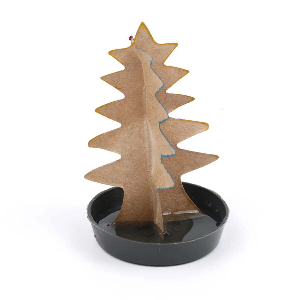 How to use: Assemble the simple two-piece cardboard tree. Fix the tree on the Plastic Container provided. Sprinkle the magic water on the tree first Add water to the Plastic Container, continue to add water when the water is dry In 24 hours, colourful crystals begin to appear on the tree branches.